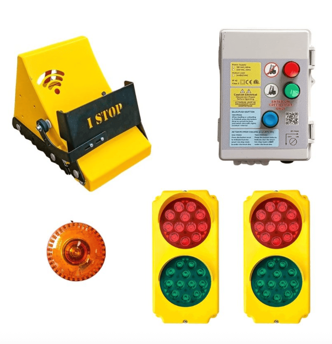 I-STOP es un sistema inalámbrico de seguridad que bloquea el movimiento del camión mientras se realizan maniobras de carga o descarga. Mediante sensores, semáforos, balizas y una unidad de control, automatiza la señalización y previene errores humanos.