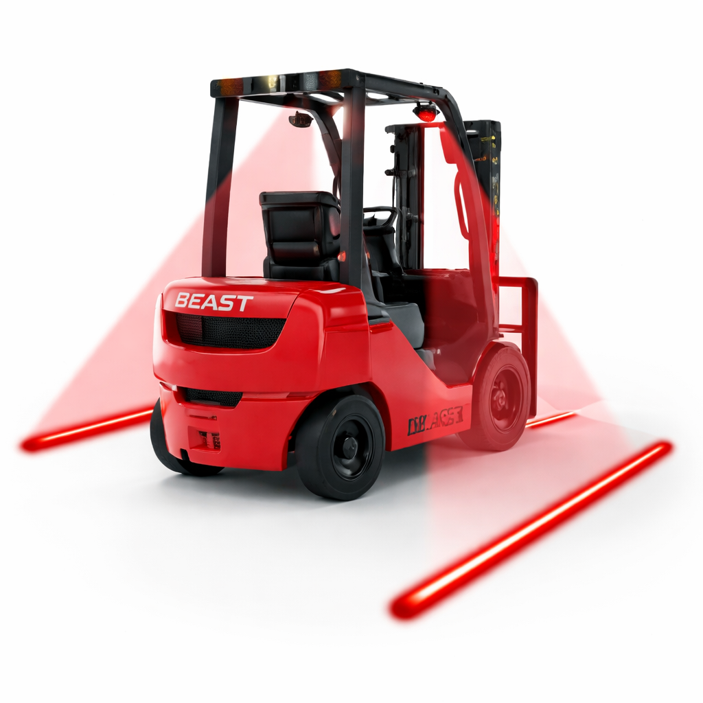 Las forklift safety zone lights proyectan líneas o áreas luminosas de alta visibilidad, incluso en ambientes con:
